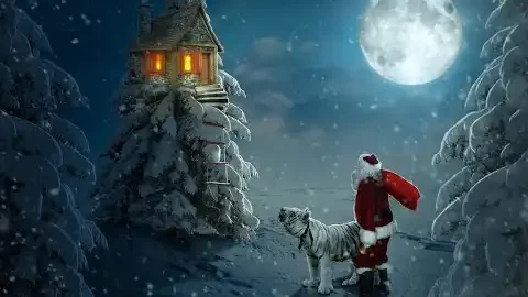 Новогодний коллаж в Фотошоп / Фотоманипуляция «Дом на ёлке» 2022